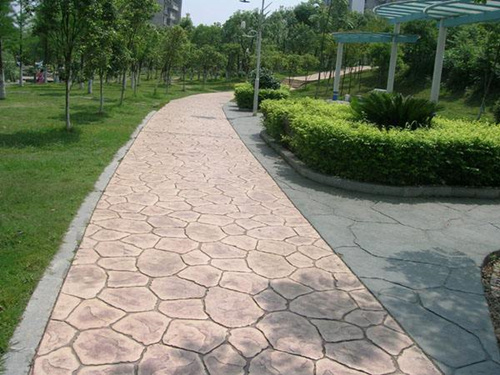 对一般道路、室内外地坪或坡度较缓的混凝土工程,采取现浇混凝土表面直接压花的施工方法。为了保证施工质量,最大限度地体现压花工艺的优越性,应尽量采取现浇混凝土表面直接压花的方法。